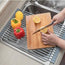 Maximize your kitchen space effortlessly—the rollout rack conveniently rolls over the sink, saving you valuable countertop space.